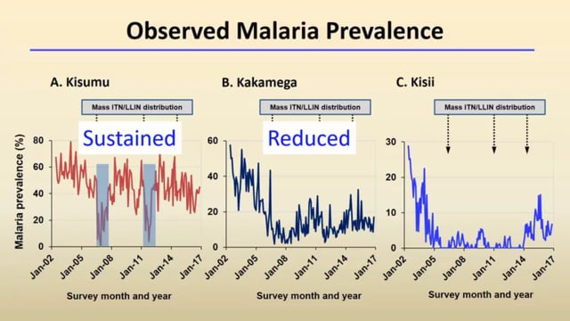 Guofa Zhou from the University of California at Irvine, United States and the Kenya Medical Research Institute, Kisumu, Kenya, gave a presentation on malaria transmission at three sentinel sites in Western Kenya from 2002 to 2016: the resurgence and causality analysis. This study focused on identifying causes for sustained malaria transmission and resurgence in three villages in Kenya, which had all received three rounds of LLIN (Long Lasting Insecticide-treated Nets) distribution. Methods included modelling malaria prevalence and vector densities. The results showed that changes in malaria prevalence over time were almost entirely due to the mass distribution of new LLINs, insecticidal decay effect and loss of net physical integrity, while changes in vector density were most affected by insecticide resistance, climatic factors and mass distribution of LLINs. He concluded that the distribution of new LLINs to replace old nets remains a useful malaria control strategy in areas with moderate insecticide resistance.