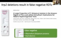 Rapid diagnostic tests (RDT) are easy-to-read devices with field applications in malaria. Common RDTs target the Histidine-Rich Protein 2 (hrp2) antigen, but many countries report parasites with hpr2/hrp3 gene deletions, undetectable by these RDTs. Claudia Vera-Arias (University of Notre Dame, United States of America) used digital droplet PCR (ddPCR) for the molecular surveillance of hrp2/hrp3 deletions to circumvent the difficulties of nested PCR (nPCR). A novel dPCR was optimized on 2 systems (BioRad QX200 and Qiagen Qiacuity). The assay was compared to nPCR using triplicates of 248 samples of asymptomatic infections from western Kenya, nPCR gave 12.3% false-negative results when compared to ddPCR. Also, mixtures of lab strains with the hrp2 deletions (Dd2) and wild-type (3D7) were used to test the effect of polyclonal infections. ddPCR reliably detected mixed infections if mutated parasites were >40%. The new ddPCR assay was used to type samples from Kenya (241), Zanzibar (Tanzania) (91), Ghana (223), Ecuador (41), Brazil (187), and southwestern Ethiopia (47). No deletions were observed in Kenya, Ghana, and Tanzania; in Ecuador, no hrp2 deletions were observed, but 53.7% of samples carried hrp3 deletions. In Ethiopia 2.1% carried a hrp2 deletion, and 74.5% hrp3 deletions (2.1% hrp2/hrp3 double deletion) and, in Brazil, 46.5% of samples carried hrp2 deletions, and 62% hrp3 deletions (46% hrp2/hrp3 double deletions).