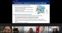 Audrey Lenhart (Centers for Disease Control and Prevention – CDC, USA) challenged the idea of technological innovation as the main focus for malaria elimination and the need to explore new solutions after COVID-19. The challenges vector control programs faced during the pre-COVID-19 era were mainly limited funding, stagnation, limited vector control toolbox, how the agenda was run by external funders, and the rampant widespread of insecticide resistance. During the pandemic, various research projects were delayed or paused and countries faced competing public health priorities with extra demand on already stressed systems. Overall, countries tried not to lose the gains achieved in vector control before the pandemic. Lenhart shared how we can reimagine vector control surveillance in the post COVID-19 era by innovations and new areas.  These areas are innovation in engagement by strengthening connections between countries and regional networks to exchange expertise and knowledge. There should also be innovation in research practices that tackle inequality faced by African scientists and acknowledge the imbalance in power dynamics between external and local institutions. She then spoke of innovations in partnerships that broaden the scope of which expertise is most valued, innovations that remove the dichotomy between international and local organizations or lead versus local organizations and innovations that increase investment in non-western organizations. This would then form a platform where structural and institutional innovations can take place empowering and recognising non-western institutions and experts as leaders. Consequently, they would become direct recipients of funding for training and equipping institutions in endemic areas. She acknowledged how corruption needed to be mitigated and not be used as an excuse to not fund institutions. Finally, resilient innovations are necessary to create strong local leadership, cultivate expertise and alleviate poverty. Lenhart concluded with how technological innovations are important but not sufficient to achieve malaria elimination.