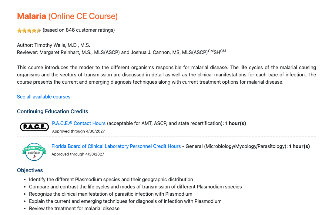 The course also describes how to treat a patient with malaria. The information in this course will be of great interest to all learners. It will be valuable to those who live in malaria areas or those going to places that will expose them to the mosquito that causes malaria. Those who want to know more about the disease and its treatment will find this course fascinating. It will also be of great interest to all healthcare professionals who would like easy access to information about malaria that they can share with their patients.