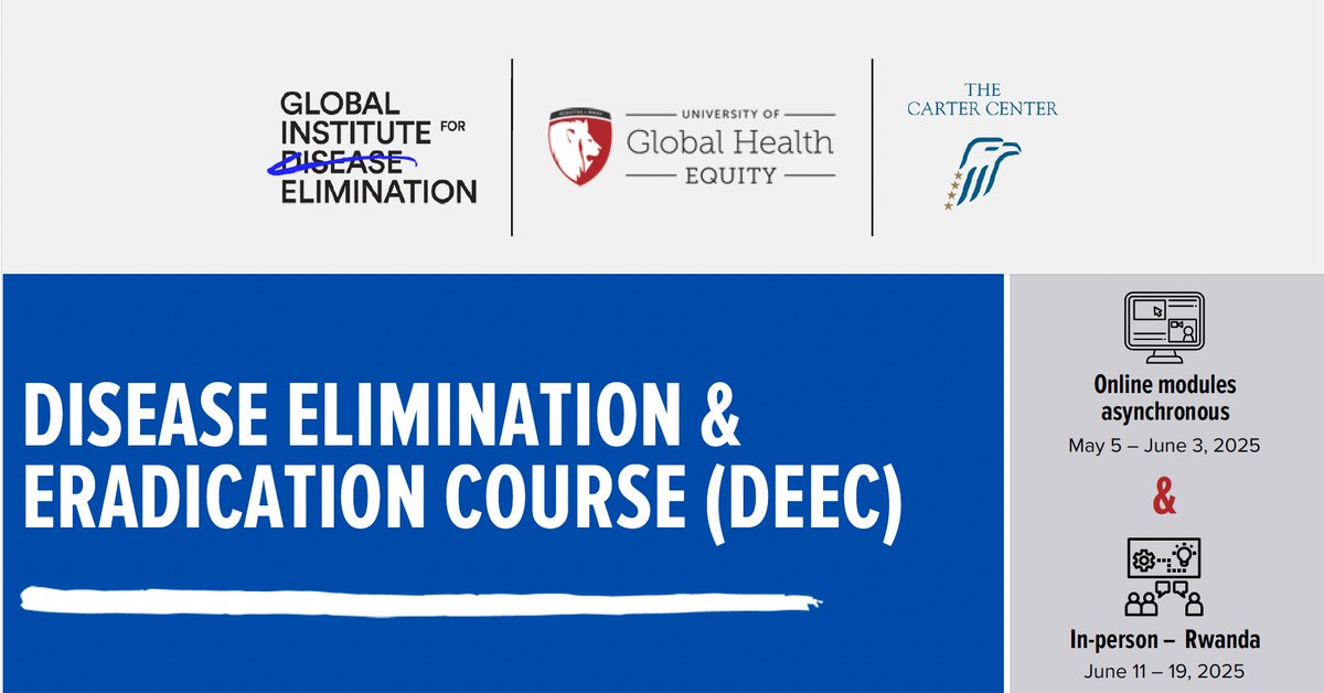 The Global Institute for Disease Elimination (GLIDE) invites you to apply for the 2025 Disease Elimination & Eradication Course (DEEC) at the University of Global Health Equity in Rwanda
