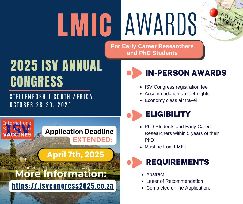 ISV invites Early-Career Researchers (within 5 years of their PhD award) and PhD students from low- and middle-income countries (LMICs) to apply for a scholarship to attend the congress in person. Application deadline, 7th of April 2025.