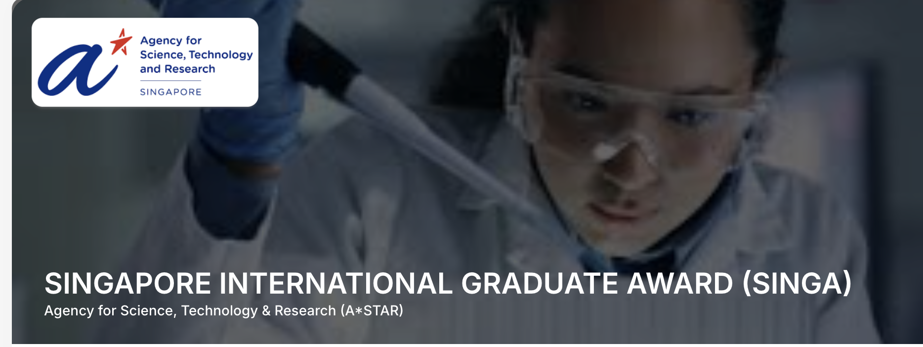 SINGA Call for Applications: Singapore International Graduate Award