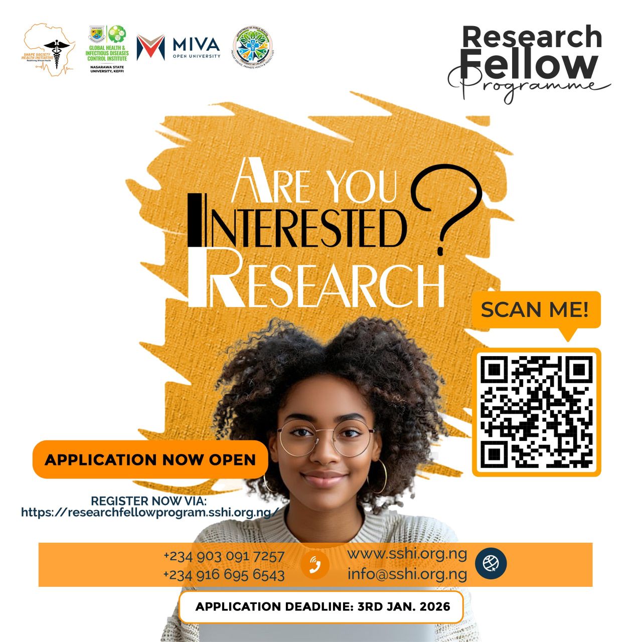 The Shape Society Health Initiative Research Fellowship Programme is open for applications. It is a fully-funded fellowship that offers a unique opportunity to gain hands-on research experience, mentorship, and networking opportunities across Africa.
