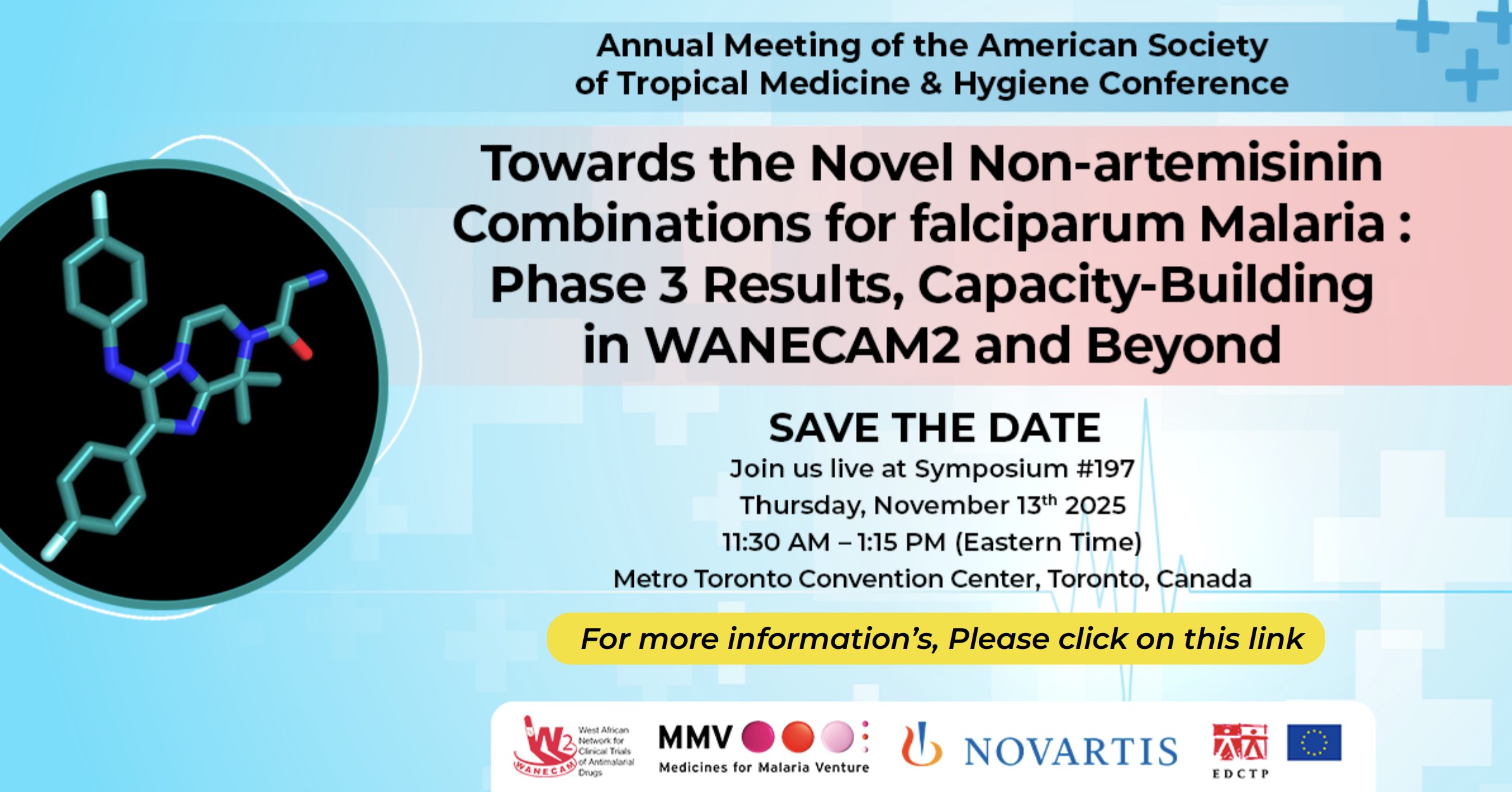 For those attending the ASTMH 2025 meeting, there will be an in-person WANECAM 2 Symposium titled “Towards the Novel Non-artemisinin Combinations for falciparum Malaria: Phase 3 Results, Capacity-Building in WANECAM 2 and Beyond“.